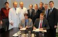 Sie unterzeichneten den Kooperationsvertrag: stehend von links Dr. Edgar Jost, Professor Tim Brümmendorff, Dr. Jens Panse, Stephan Leng (alle UKA), Dr. Elmar Keutgen, Dr. Guido Klinkenberg, Dr. Peter Jousten und Danny Havenith (alle Krankenhaus Eupen), sowie sitzend Peter Asché und Prof. Thomas Ittel (ebenfalls UKA). |